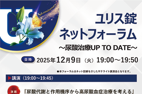 12月9日(火)開催ネットフォーラム~尿酸治療UP TO DATE~