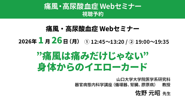 痛風・高尿酸血症Webセミナー”痛風は痛みだけじゃない”身体からのイエローカード